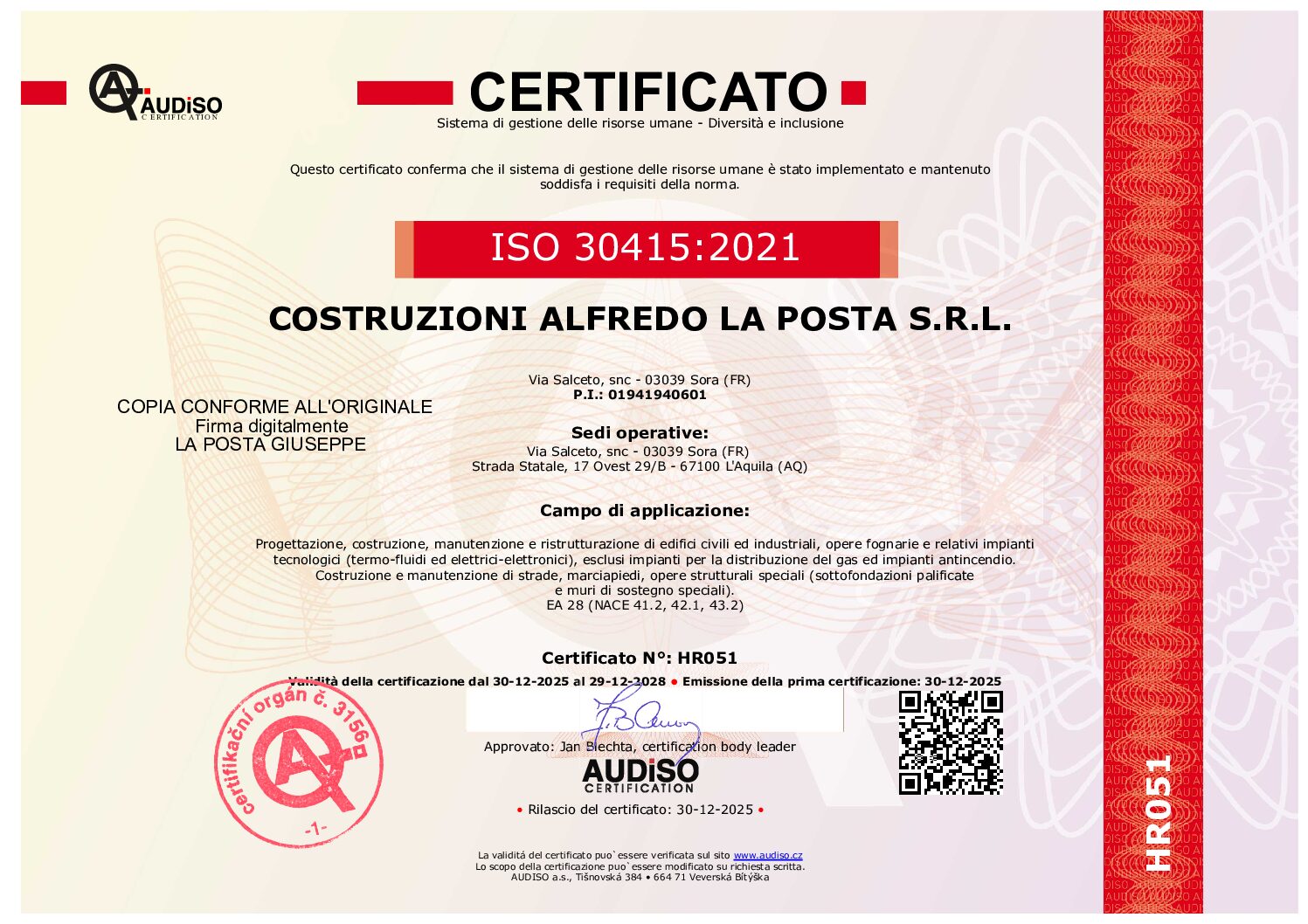 Costruzioni Alfredo La Posta S.r.l. è riconosciuta come Impresa Rosa dalla Regione Lazio, grazie alla significativa presenza femminile nella direzione e nella gestione aziendale.